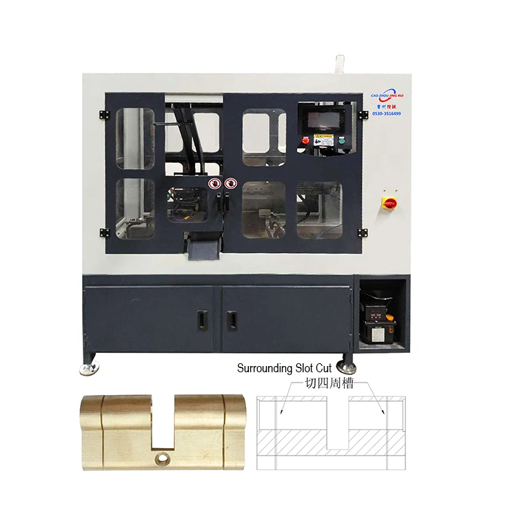 Diese Schlossmaschine ist eine Schlitzverarbeitungsmaschine für Einsteckschlösser. Es verwendet die automatische Zuführung, den automatischen Rundum-Frässchlitz, das automatische Stanzen, die realisierte automatische CNC-Bearbeitung und ist die ideale Wahl für die Verarbeitung von Einsteckschlitzen.